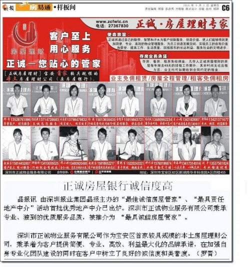 祝贺我司荣获宝安区唯一“最佳诚信房屋管家”