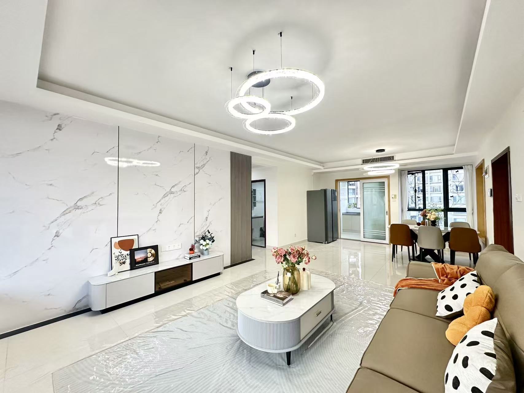 后来业主选择托管给我们,从设计到软装全流程包办:免费设计师上门,结合年轻租客的需求定制方案;专业施工队1-2个月极速完工,材料家具厂家直采省成本;最后还免费做软装布置,让房子彻底焕新。